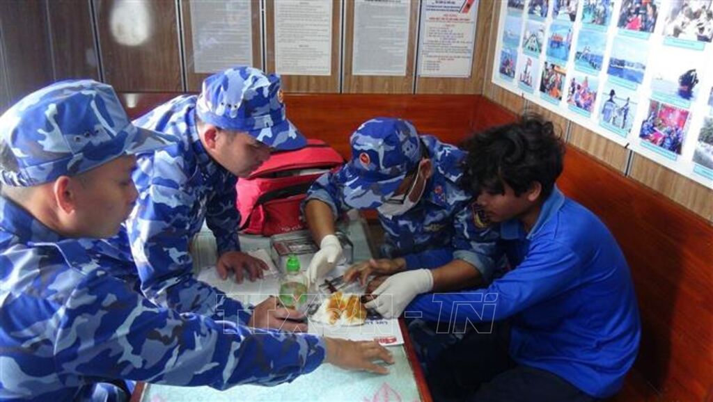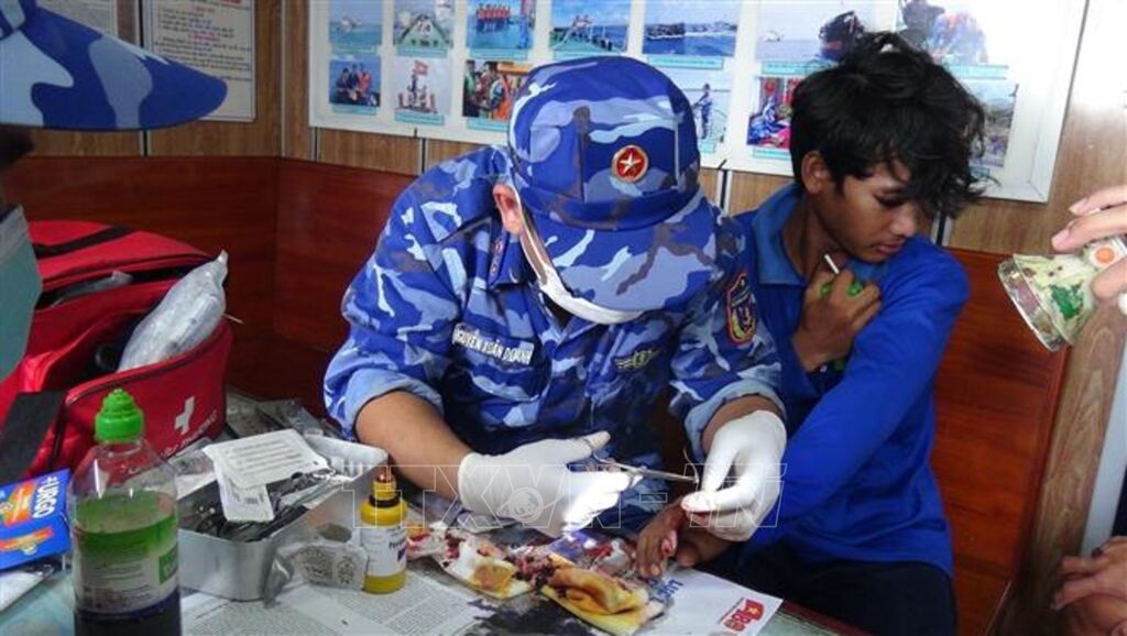 Theo tin báo của thuyền trưởng Đặng Quốc Bảo, thuyền viên Danh Sáng, sinh năm 2005, thường trú xã Hòn Đất, tỉnh An Giang, trong quá trình làm việc dưới tàu cá bị cánh quạt hút khô làm đứt một đốt ngón tay, cần hỗ trợ y tế.