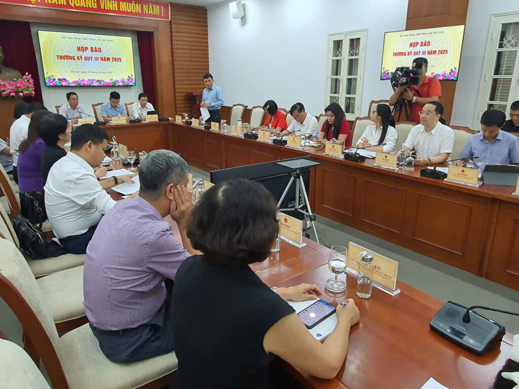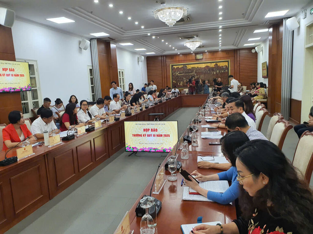 Chiều 10/10, tại Hà Nội, Bộ Văn hóa, Thể thao và Du lịch (VHTTDL) tổ chức họp báo định kỳ quý III năm 2025, nhằm thông tin về tình hình thực hiện nhiệm vụ của ngành trong 9 tháng đầu năm và phương hướng trọng tâm các tháng cuối năm 2025. Các ông Cao Lê Tuấn Anh- Chánh Văn phòng; Lê Quang Tự Do- Cục trưởng Cục Phát thanh, Truyền hình và Thông tin điện tử ; Nguyễn Văn Hiếu- Phó Cục trưởng Cục Báo chí (Bộ Văn hóa, Thể thao và Du lịch) đồng chủ trì họp báo.