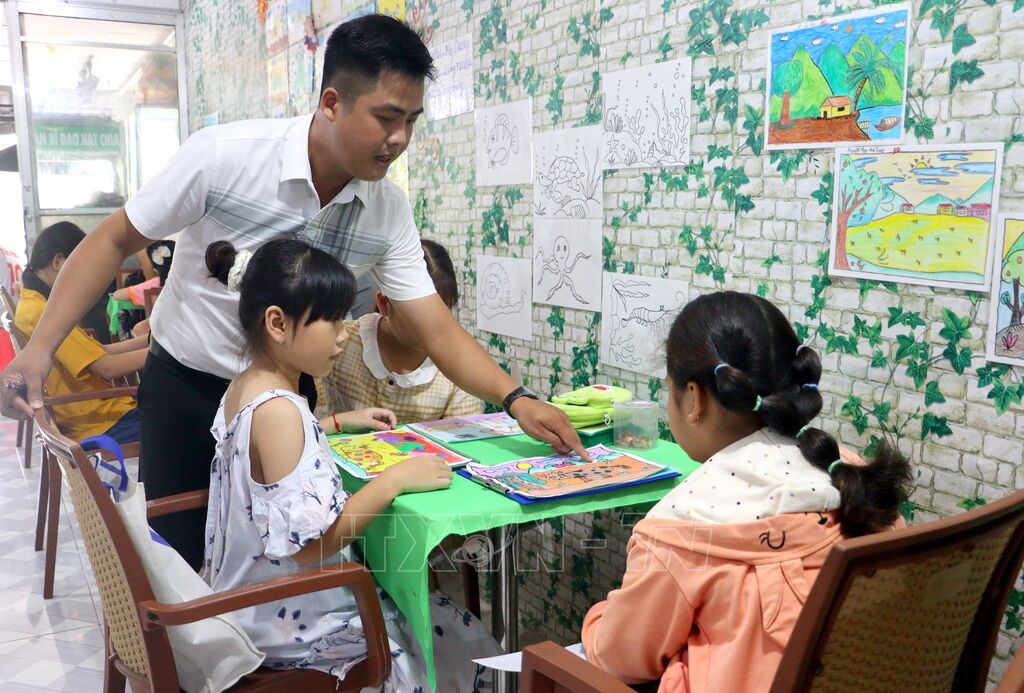 Xuất phát từ nhu cầu học tập và vui chơi trong dịp hè của học sinh vùng nông thôn, từ năm 2015, thầy Nguyễn Khánh (giáo viên Trường Tiểu học Hựu Thành B, xã Vĩnh Xuân) đã khởi xướng tổ chức mô hình lớp học hè miễn phí. Ban đầu, thầy tổ chức lớp học tại nhà riêng ở xã Hiếu Thành (huyện Vũng Liêm cũ) với khoảng 25 học sinh tham gia. Nhận thấy hiệu quả tích cực, thầy đã mở rộng mô hình ra nhiều xã khác và ngày càng có nhiều phụ huynh tin tưởng, đăng ký cho con tham gia. Dịp hè năm nay, lớp học được tổ chức tại xã Vĩnh Xuân và xã Hòa Bình, thu hút hơn 50 em học sinh tham gia. Các em vừa được ôn lại kiến thức, vừa tiếp cận các môn học năng khiếu, như: Mỹ thuật, âm nhạc, Tiếng Anh, nói trước công chúng… Các buổi học diễn ra trong không khí rộn ràng, sôi nổi, giúp học sinh mạnh dạn, tự tin thể hiện bản thân. Môi trường học tập thân thiện, cởi mở đã khơi dậy niềm đam mê và giúp các em dần bộc lộ năng khiếu của bản thân.