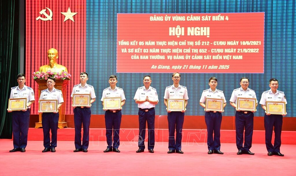 Ngày 21/11, tại đặc khu Phú Quốc (tỉnh An Giang), Đảng ủy Vùng Cảnh sát biển 4 tổ chức Hội nghị tổng kết 5 năm thực hiện Chỉ thị số 212-CT/ĐU ngày 10/6/2021 của Ban Thường vụ Đảng ủy Cảnh sát biển Việt Nam về tiếp tục đẩy mạnh phong trào “Bốn tốt, bốn không, bốn chống” và sơ kết 3 năm thực hiện Chỉ thị số 652-CT/ĐU ngày 21/9/2022 về tăng cường công tác quản lý tình hình tư tưởng, khắc phục tình trạng quân nhân xin ra quân, chuyển đơn vị công tác.