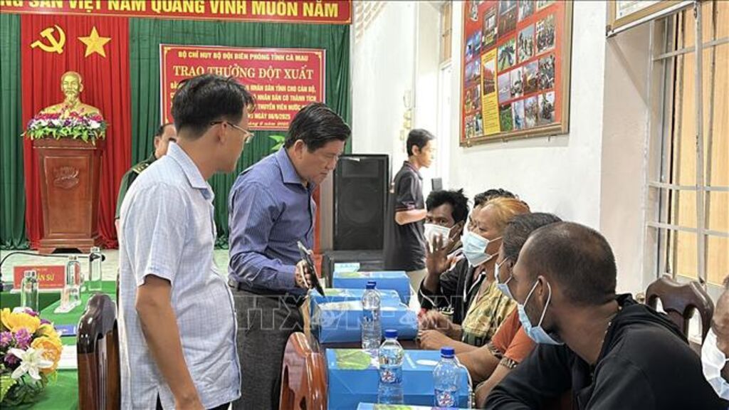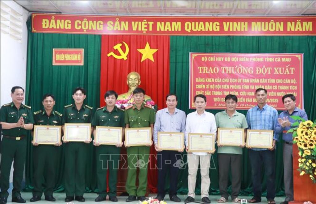 Liên quan đến thông tin 8 thuyền viên nước ngoài gặp nạn trên biển đã được cứu vớt, hỗ trợ nhân đạo, ngày 10/6, đoàn công tác của UBND tỉnh Cà Mau do Phó Chủ tịch UBND tỉnh Lê Văn Sử dẫn đầu đã đến Đồn Biên phòng Khánh Hội, huyện U Minh, để thăm hỏi, động viên những người gặp nạn và trao thưởng đột xuất cho tập thể, các cá nhân có thành tích xuất sắc trong tìm kiếm, cứu nạn.