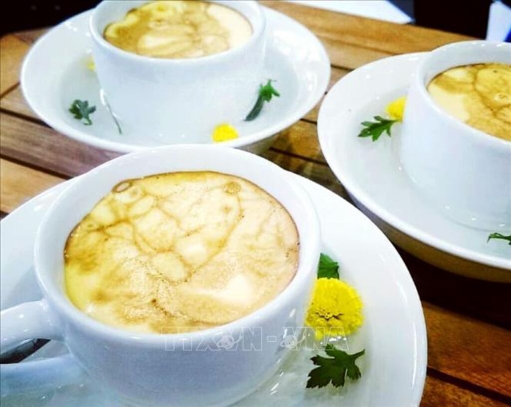 Đứng ở vị trí thứ 32 trong bảng xếp hạng là cà phê trứng, đây là loại thức uống kết hợp giữa cà phê đen đặc và lòng đỏ trứng đã được đánh bông, tạo nên một lớp bọt thơm ngon. (Ảnh: Phạm Hậu/TTXVN)