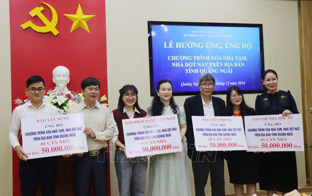 Tại buổi lễ, toàn thể công chức, viên chức, người lao động Sở Thông tin và Truyền thông đã ủng hộ trực tiếp nhằm chung tay cùng các cấp, các ngành thực hiện có hiệu quả mục tiêu xóa hoàn toàn nhà tạm, nhà dột nát trên địa bàn tỉnh trong năm 2025. Đại diện Báo Tiền phong, Báo Pháp luật Việt Nam, Báo Xây dựng và Tạp chí Nhà đầu tư đã đóng góp vào Chương trình 04 căn nhà với tổng số tiền 200 triệu đồng. Trước đó, Báo Nhân dân cũng trao 500 triệu đồng chung tay hỗ trợ tỉnh Quảng Ngãi xóa nhà tạm dột nát./.