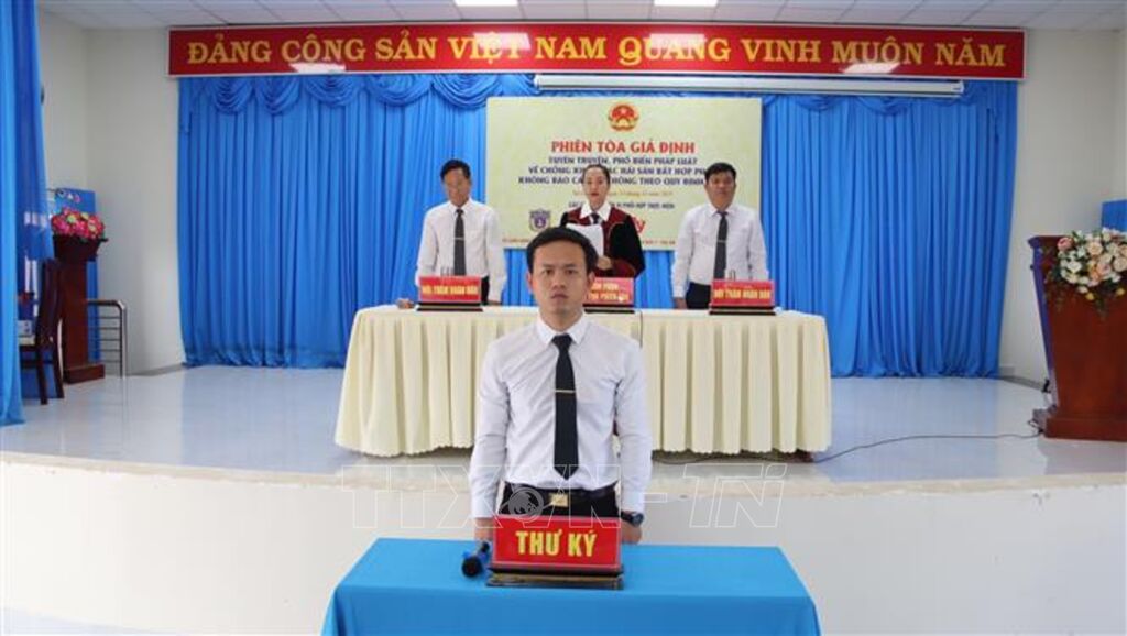 Phiên tòa giả định xét xử sơ thẩm vụ án hình sự đối với hai bị cáo: Nguyễn Văn Dũng (chủ tàu cá) và Nguyễn Văn Hiền (thuyền trưởng) về các tội danh: “Tổ chức cho người khác xuất cảnh trái phép” và “Gây rối loạn hoạt động của phương tiện điện tử”.