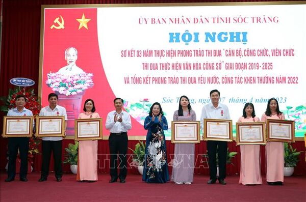 Các tỉnh đã tích cực hưởng ứng và cụ thể hóa phong trào thi đua do Trung ương phát động, phù hợp với đặc điểm của từng địa phương, đơn vị như: “Xây dựng mô hình Công dân học tập” giai đoạn 2021 - 2023 (tỉnh Bạc Liêu); “Đồng Khởi mới” giai đoạn 2020 - 2025, tầm nhìn đến năm 2030 (tỉnh Bến Tre); “Xây dựng văn hóa và con người Đồng Tháp nghĩa tình, năng động, sáng tạo”; thi đua xây dựng chính quyền số, phát triển kinh tế số, xã hội số (tỉnh Đồng Tháp)… Qua đó, các tỉnh đã kịp thời biểu dương, khen thưởng tập thể, cá nhân tiêu biểu./.