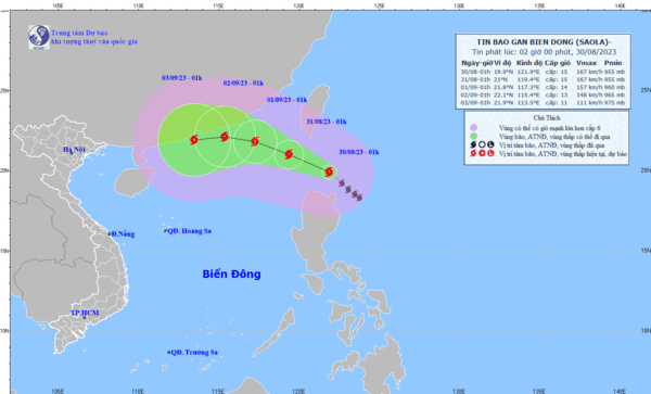 Dự báo đến 10 giờ ngày 1/9, vị trí tâm bão ở vào khoảng 22,3 độ Vĩ Bắc; 116 độ Kinh Đông, trên vùng biển phía Đông Nam tỉnh Quảng Đông (Trung Quốc). Sức gió mạnh nhất vùng gần tâm bão mạnh cấp 14, giật cấp 17, bão di chuyển theo hướng Tây Tây Bắc với tốc độ khoảng 10 km/giờ.