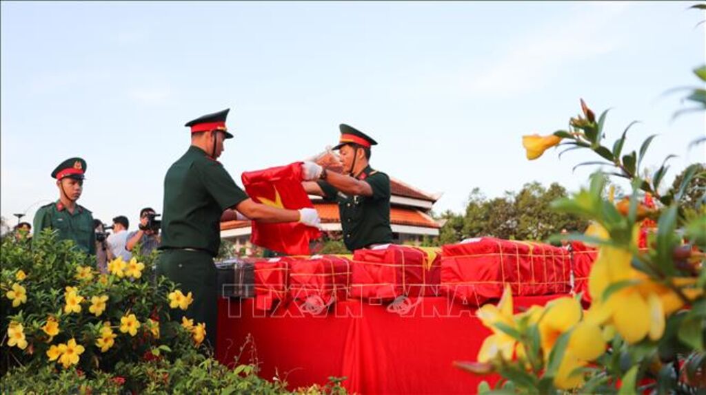 TTXVN - Sáng 22/12, Tỉnh ủy, HĐND, UBND, Ủy ban MTTQ Việt Nam, Ban Chỉ đạo 515 tỉnh Hậu Giang tổ chức Lễ truy điệu, cải táng hài cốt liệt sỹ hy sinh trong kháng chiến chống Mỹ.