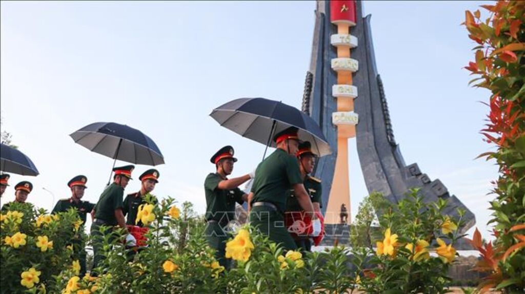 Trong không khí trang nghiêm, các đại biểu thành kính dâng hoa, dâng hương và dành một phút mặc niệm để tưởng nhớ những người con của quê hương, đất nước hiến trọn tuổi thanh xuân, chiến đấu và ngã xuống vì nền độc lập, tự do của dân tộc.