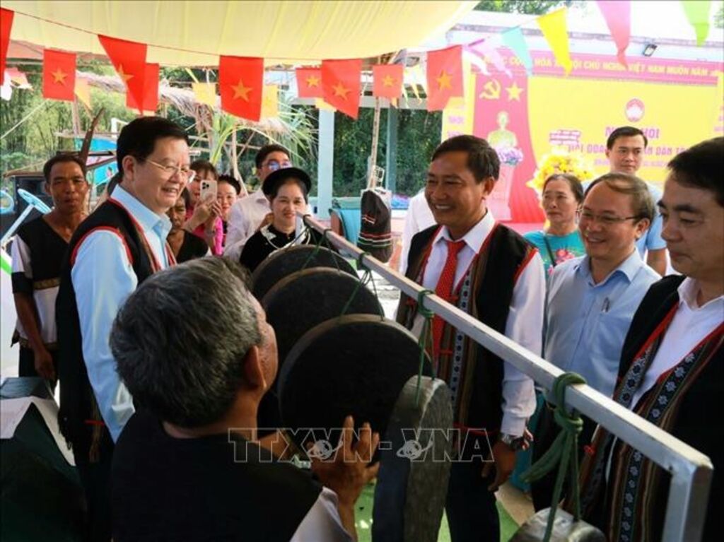 Nói chuyện với người dân các dân tộc 3 thôn Bến Khế, Suối Cau, Suối Sâu trong ngày hội lớn của tinh thần đoàn kết, Phó Thủ tướng Chính phủ Mai Văn Chính vui mừng trước những kết quả trong lao động sản xuất, nâng cao đời sống, xây dựng chính quyền, cộng đồng của thôn.