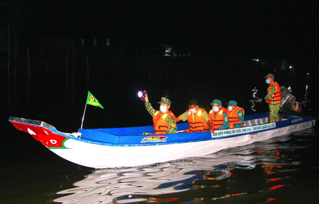 Đêm biên giới, mới hơn 19 giờ, cả vùng trời Tây Nam đã đặc quánh một màu đen. Gió rít, mưa lớn do ảnh hưởng bão số 12 trút xuống không ngớt. Thế nhưng, tổ công tác gồm 13 đồng chí của Đồn Biên phòng Cửa khẩu quốc tế Tịnh Biên vẫn lặng lẽ khoác áo mưa, áo phao, mang theo đèn pin khẩn trương xuống hai chiếc vỏ lãi (thuyền máy làm bằng nhựa composite) đang đợi sẵn chuẩn bị hành trình xuyên đêm tuần tra trên cánh đồng ngập nước thuộc phường Tịnh Biên, tỉnh An Giang để chống buôn lậu.