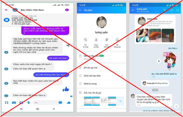 Cụ thể, chị N.H.T (sinh năm 1987, ngụ tại ấp Hòa Hiệp, xã Long Hòa, huyện Cần Giờ, Thành phố Hồ Chí Minh) cho biết, ngày 11/8/2022, trong quá trình sử dụng mạng xã hội Facebook, chị T thấy có trang Bảo hiểm Việt Nam cùng dòng chữ "Cung cấp dịch vụ Giải ngân trước hạn. 1- Làm lại sổ Bảo hiểm xã hội. 2- Hỗ trợ giải ngân hồ sơ quá hạn". Do đang có nhu cầu tìm hiểu và giải quyết chế độ hồ sơ quá hạn bảo hiểm xã hội nên chị T đã liên hệ với Fanpage trên. Chị T được hướng dẫn liên hệ với một tài khoản Zalo tên Lương Uyên.