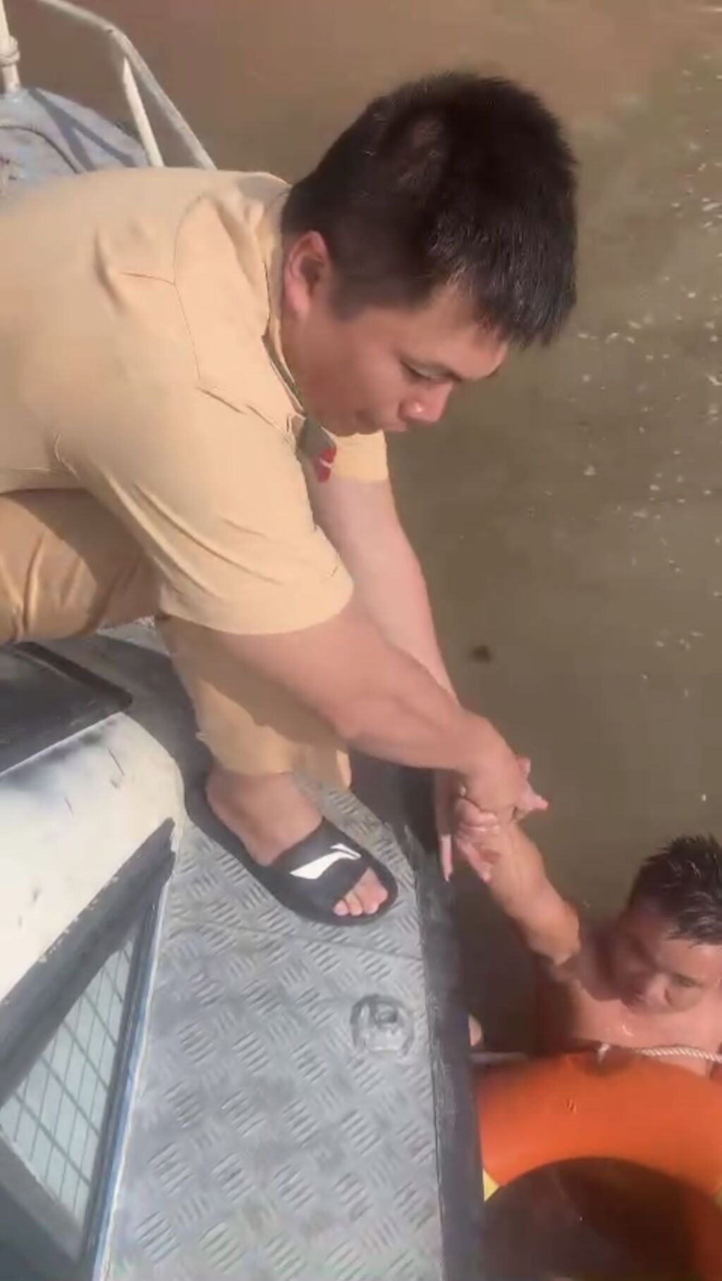 TTXVN - Khoảng 7 giờ 30 ngày 7/7, Tổ công tác thuộc Đội Phòng ngừa đấu tranh chống tội phạm, Phòng Cảnh sát Đường thủy, Công an thành phố Hải Phòng trong quá trình thực hiện nhiệm vụ trinh sát nắm tình hình về an ninh trật tự và trật tự an toàn xã hội trên tuyến sông Cấm, khi đến khu vực cảng Vật Cách thuộc địa phận phường Quán Toan, Hồng Bàng, nghe thấy các thuyền viên trên tàu vận tải thủy THANH LIÊM 09 đang neo đậu liên tục gọi to. Các thuyền viên đề nghị cứu giúp một thuyền viên của tàu vừa bị ngã xuống sông.