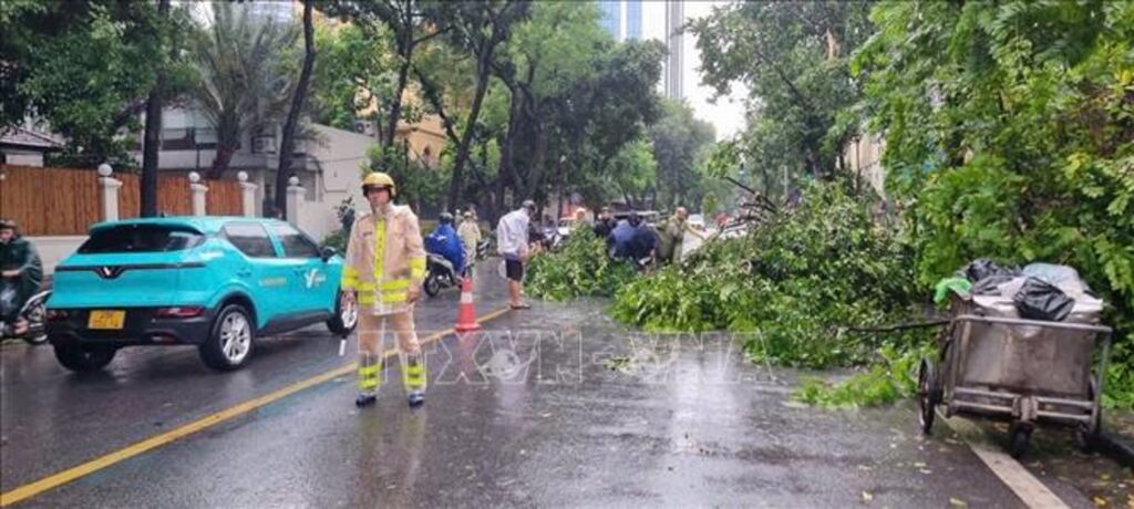 Trong khu vực trung tâm thành phố vẫn còn một số cây xanh gãy đổ chắn ngang đường, nên các dòng phương tiện phải tránh, đi vòng sang đường khác, khiến lưu lượng phương tiện tăng trên một số tuyến đường. Theo phản ánh của người dân, tại ngã tư Hàng Bài - Trần Hưng Đạo, cây cổ thụ đổ chiếm nửa đường, các phương tiện di chuyển chậm; tại đầu phố Ô Quan Chưởng, cây xanh đổ chắn ngang đầu phố nên phương tiện không thể di chuyển từ đường Trần Nhật Duật vào Ô Quan Chưởng.