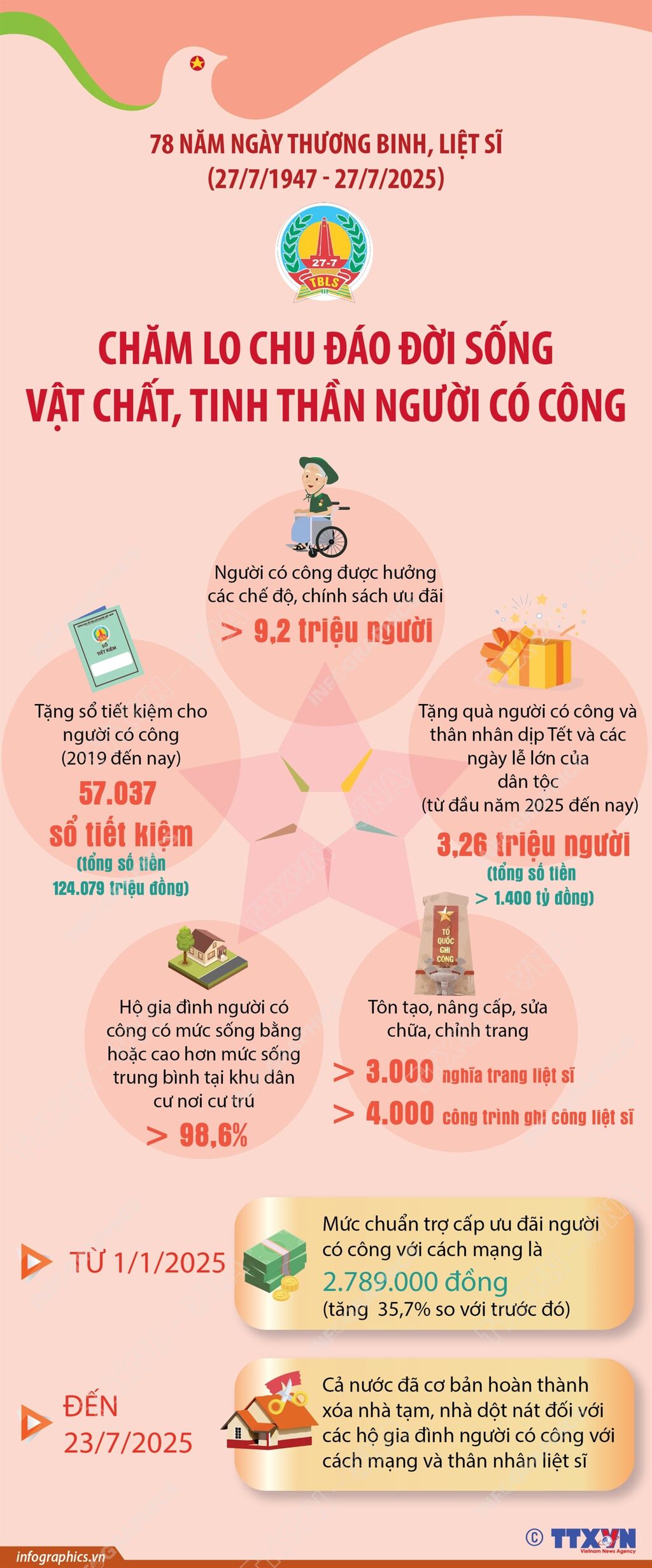 Trong suốt 78 năm qua (1947-2025), công tác đền ơn, đáp nghĩa đối với thương binh, bệnh binh, thân nhân liệt sĩ, những người có công với cách mạng luôn được thực hiện hiệu quả và thiết thực.