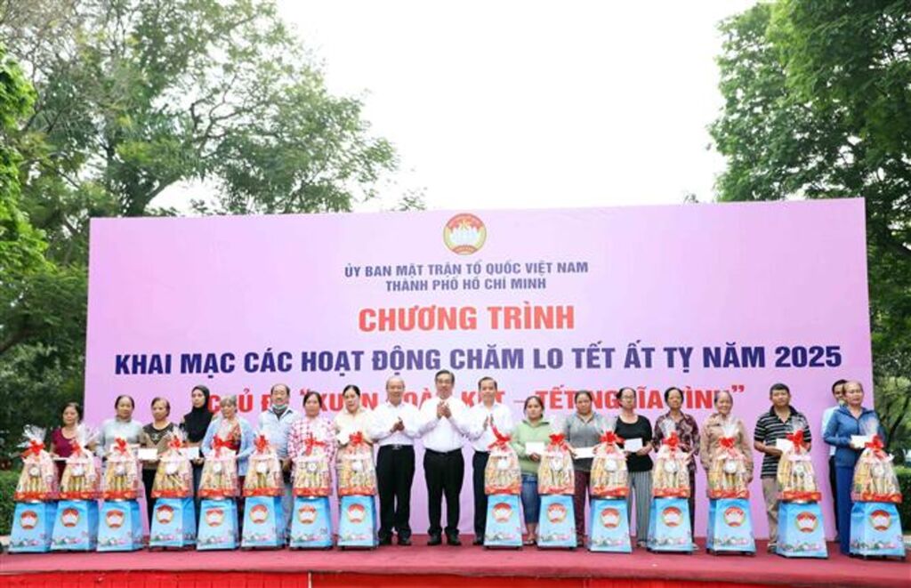 Ngày 15/1, tại Công viên Bình Phú (Quận 6), Ban Thường trực Ủy ban MTTQ Việt Nam Thành phố Hồ Chí Minh tổ chức khai mạc các hoạt động chăm lo Tết Ất Tỵ năm 2025 với chủ đề “Xuân đoàn kết - Tết nghĩa tình”.