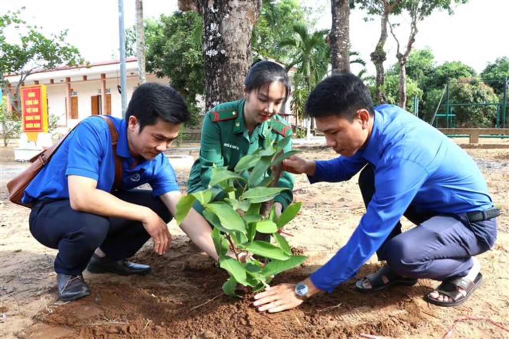 Phát động “Tết trồng cây đời đời nhớ ơn Bác Hồ”, lãnh đạo Bộ Chỉ huy Bộ đội Biên phòng và Tỉnh đoàn Trà Vinh, đoàn viên thanh niên đã trồng 100 cây xanh trong khuôn viên Đồn Biên phòng Mỹ Long.