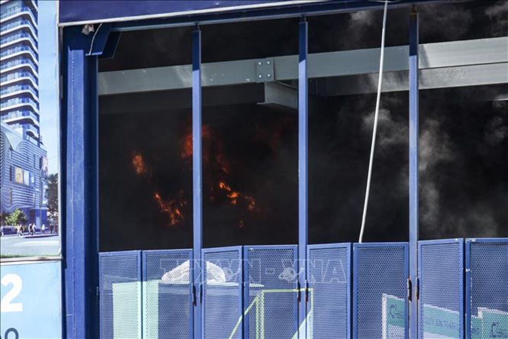 Theo quan sát của phóng viên TTXVN tại hiện trường, khu vực tầng 1 của Dự án Trung tâm cao ốc phức hợp Nguyễn Kim bất ngờ có khói đen bốc lên nghi ngút, ám đen một mảng lớn ở mặt ngoài của các tầng phía trên.