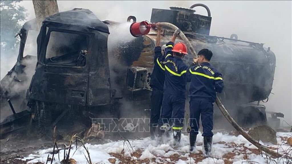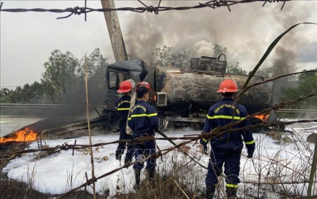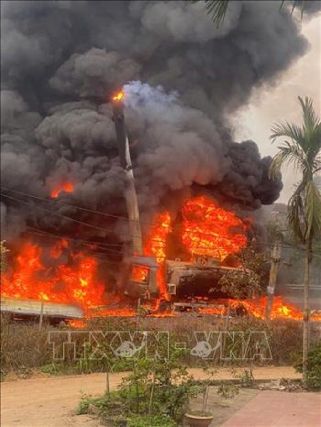 Xe ô tô chở dầu bốc cháy dữ dội.
