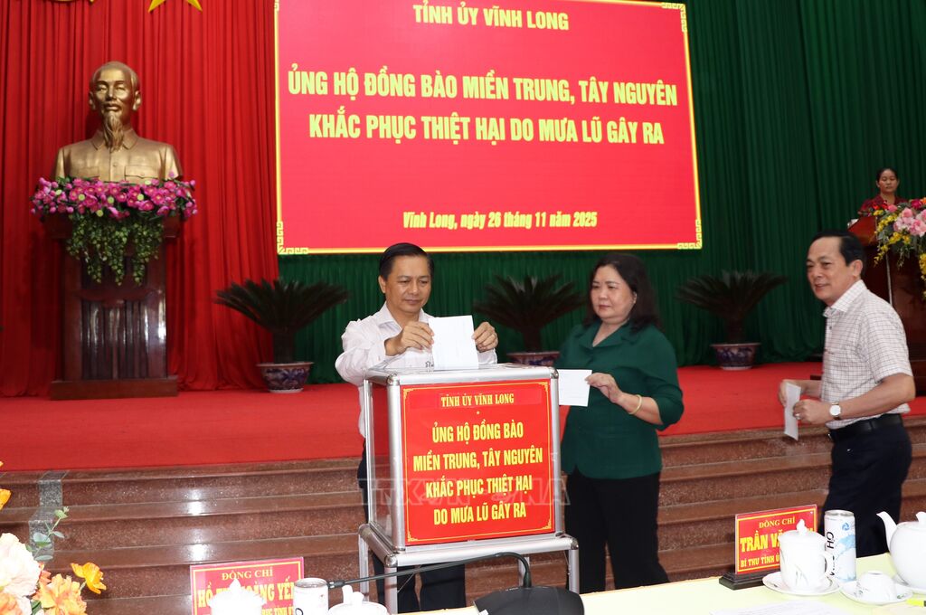 Ngày 26/11, Tỉnh ủy Vĩnh Long tổ chức quyên góp ủng hộ đồng bào miền Trung, Tây Nguyên khắc phục thiệt hại do mưa lũ gây ra.