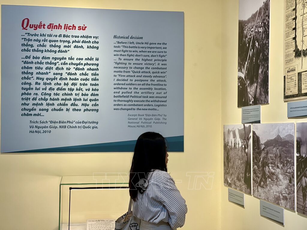 Trưng bày “Điện Biên Phủ - Tinh thần bất diệt” diễn ra đến hết tháng 6/2024 tại Bảo tàng Lịch sử quốc gia (25 Tông Đản, Hoàn Kiếm, Hà Nội), góp phần nêu bật ý nghĩa, tầm vóc, giá trị của chiến thắng Điện Biên Phủ, yếu tố tiên quyết là sức mạnh của tinh thần đại đoàn kết toàn dân tộc Việt Nam dưới sự lãnh đạo tài tình, sáng suốt của Đảng, thể hiện sự trưởng thành của Quân đội nhân dân Việt Nam. Tinh thần bất diệt đó là động lực tiếp thêm sức mạnh cho toàn Đảng, toàn dân và toàn quân ta trên con đường đổi mới, hội nhập, phát triển đất nước./.