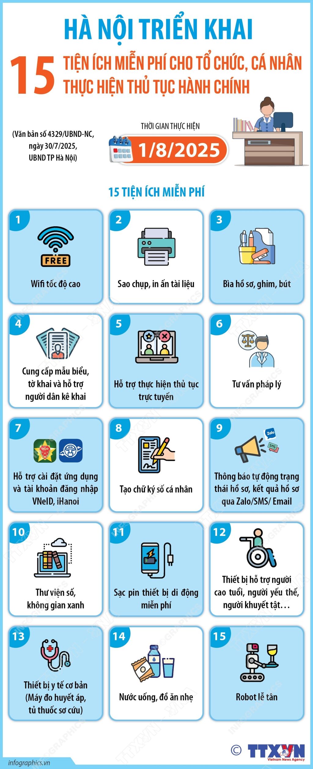 Từ ngày 1/8, người dân và doanh nghiệp khi đến thực hiện các thủ tục hành chính tại các chi nhánh Trung tâm Phục vụ hành chính công thành phố và Điểm phục vụ hành chính công trên địa bàn Hà Nội được sử dụng nhiều tiện ích miễn phí