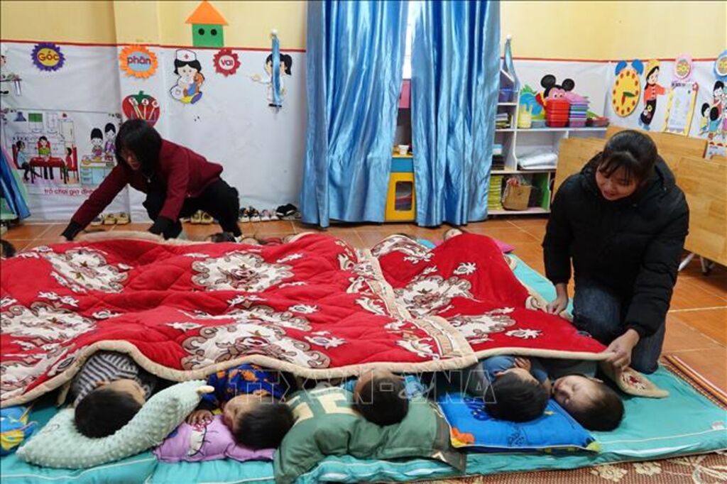 Cách điểm trường chính gần 10km và nằm ở độ cao hơn 1.000m so với mực nước biển, những ngày này, nhiệt độ tại điểm Trường mầm non Háng Bla Ha A, bản Háng Bla Ha A, xã Khao Mang, huyện Mù Cang Chải trung bình từ 5 - 16 độ C. Nhằm đảm bảo sức khỏe cho trẻ, các cô giáo tăng cường biện pháp giữ ấm như, thêm chăn, ga, đệm và chủ động tuyên truyền đến phụ huynh mặc ấm cho con trước khi đến lớp. Nhờ vậy, điểm trường luôn duy trì tỷ lệ chuyên cần.