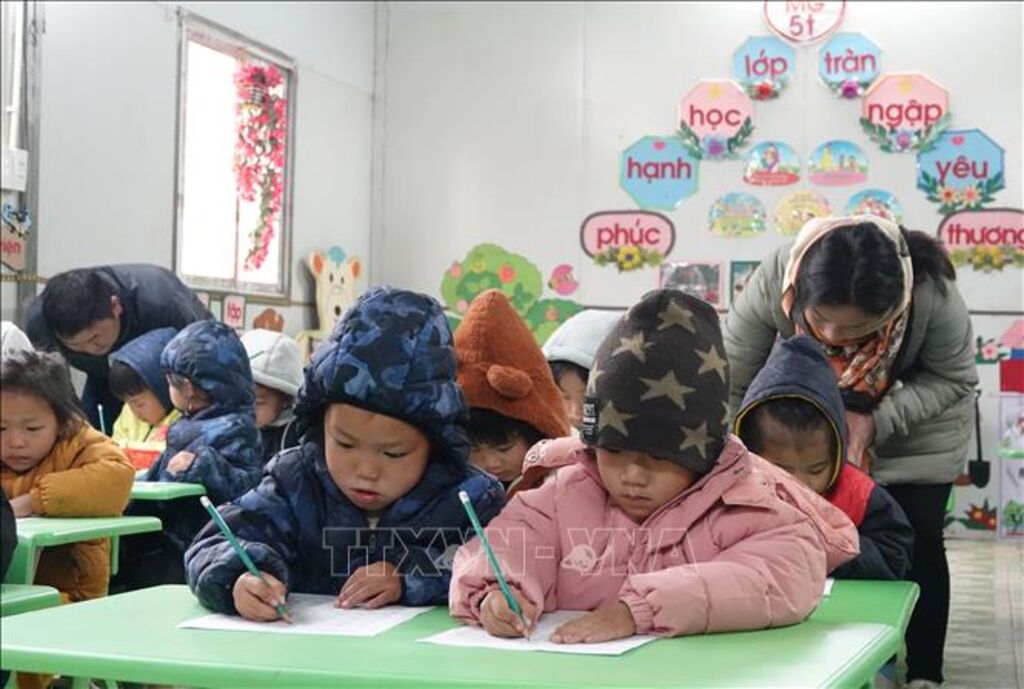 Để đảm bảo sức khỏe cho học sinh đến lớp, nhất là với cấp mầm non, các trường học tại huyện Mù Cang Chải có nhiều giải pháp giữ ấm cho học sinh.