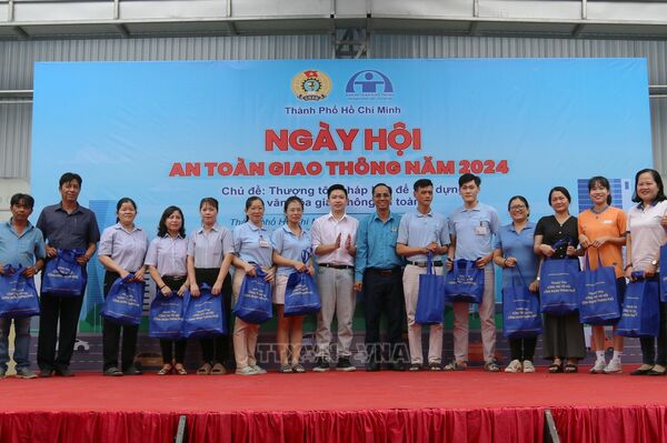Chương trình “Ngày hội An toàn giao thông” năm 2024 với chủ đề “Thượng tôn pháp luật để xây dựng văn hóa giao thông an toàn” thu hút đông đảo đoàn viên công nhân, đoàn viên nghiệp đoàn xe ôm, người lao động tham gia.