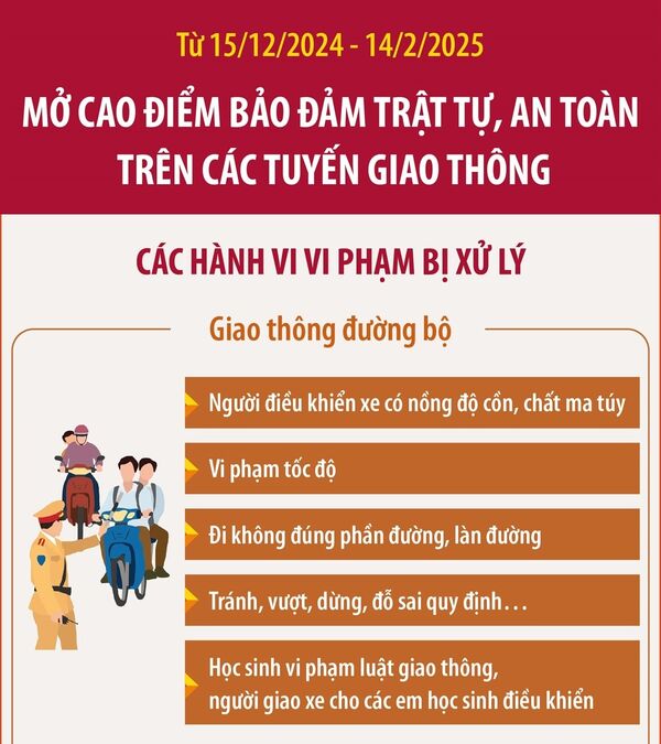 Từ 15/12/2024 - 14/2/2025: Mở cao điểm bảo đảm trật tự, an toàn trên các tuyến giao thông