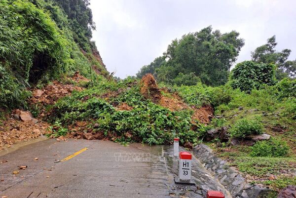 Thi công 3 ca liên tục để thông tuyến tại các vị trí sạt lở do mưa lũ