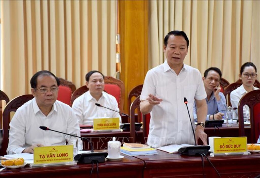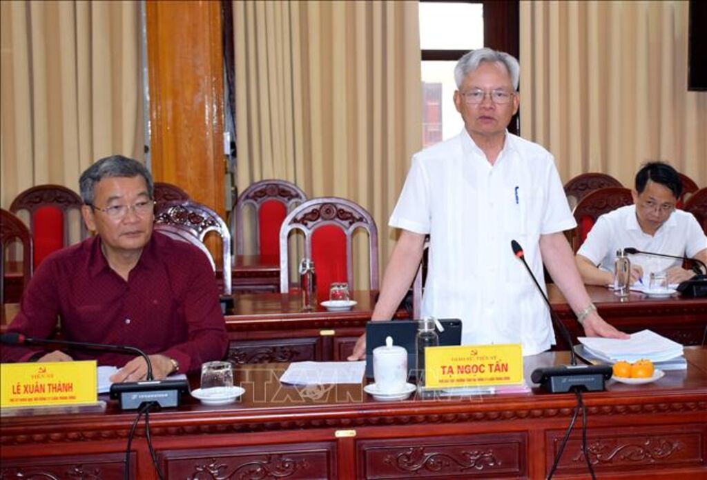 TTXVN - "Chủ động, linh hoạt, sáng tạo trong lãnh đạo, thực hiện các nhiệm vụ trị" là đánh giá của Giáo sư, Tiến sĩ Tạ Ngọc Tấn- Phó Chủ tịch Hội đồng Lý luận Trung ương, Trưởng đoàn công tác của Hội đồng tại buổi làm việc với Tỉnh ủy Yên Bái ngày 24/3.