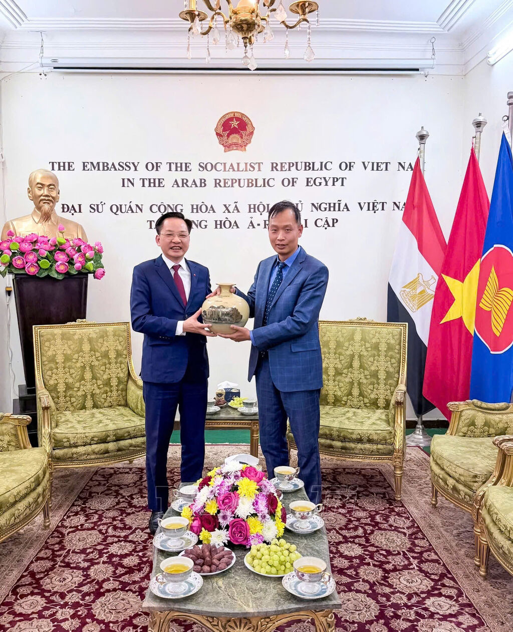 Đoàn Tập đoàn Hoá chất Việt Nam do Tổng Giám đốc Nguyễn Hữu Tú làm trưởng đoàn thăm và làm việc tại đại sứ quán Việt Nam tại Ai Cập.