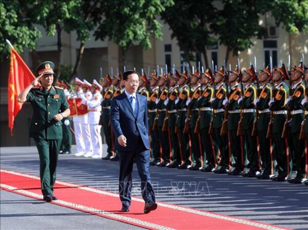 TTXVN - Nhân dịp kỷ niệm 79 năm Ngày thành lập Quân đội nhân dân Việt Nam (22/12/1944 - 22/12/2023) và 34 năm Ngày hội Quốc phòng toàn dân (22/12/1989 - 22/12/2023), sáng 18/12, tại Hà Nội, Chủ tịch nước Võ Văn Thưởng tới thăm, kiểm tra công tác huấn luyện sẵn sàng chiến đấu tại Binh chủng Đặc công. Cùng dự có lãnh đạo một số bộ, ngành và Bộ Quốc phòng.