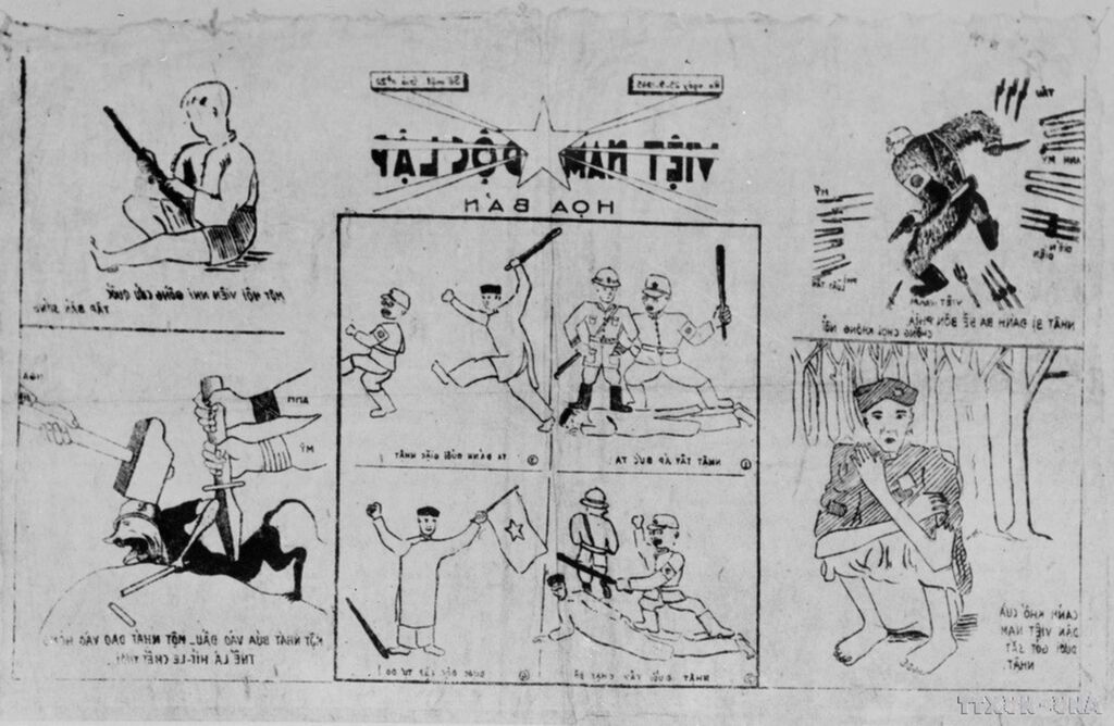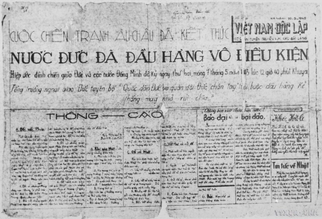 Văn phong báo chí và phong cách làm báo độc đáo của Chủ tịch Hồ Chí Minh luôn hướng tới việc làm sao cho bài viết sinh động, hấp dẫn, dễ hiểu, dễ nhớ để truyền bá, cổ động tư tưởng, hành động cách mạng đến từng cá nhân đối tượng của bài báo. Trong ảnh: Những bức hình đăng trên báo “Việt Nam độc lập” do Chủ tịch Hồ Chí Minh sáng lập, phát hành ngày 10/4/1945, tuyên truyền cổ động cho phong trào cách mạng Việt Nam.