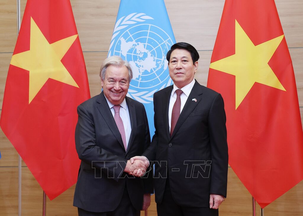 Nhân dịp này, thay mặt Nhà nước và nhân dân Việt Nam, Chủ tịch nước một lần nữa cảm ơn sâu sắc Liên hợp quốc và Ngài Tổng Thư ký về sự ủng hộ và đồng hành với Việt Nam suốt những năm tháng qua; đồng thời tin tưởng rằng, mặc dù phía trước còn nhiều khó khăn, nhưng Liên hợp quốc sẽ tiếp tục là ngọn cờ của hòa bình và hợp tác quốc tế, truyền cảm hứng cho các quốc gia cùng nhau đoàn kết, vượt qua mọi thách thức để tiếp tục tiến lên.