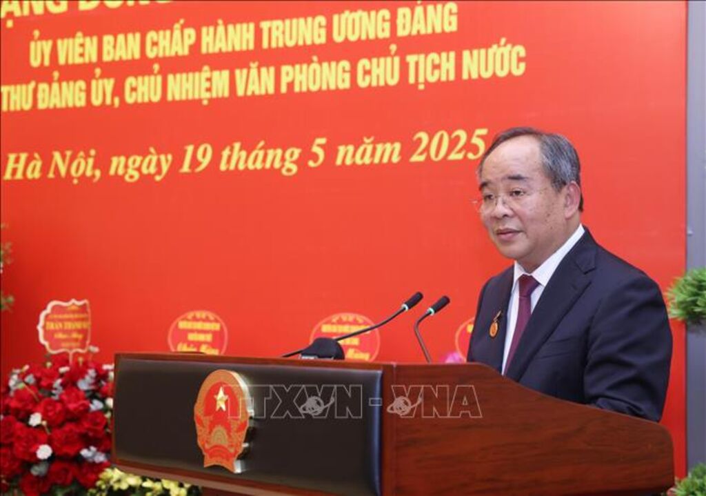 Thay mặt lãnh đạo Đảng và Nhà nước, Chủ tịch nước Lương Cường trân trọng trao tặng Huy hiệu 40 năm tuổi Đảng và nhiệt liệt chúc mừng Chủ nhiệm Văn phòng Chủ tịch nước Lê Khánh Hải, cũng như Đảng bộ Văn phòng Chủ tịch nước trong ngày vui đầy ý nghĩa này.