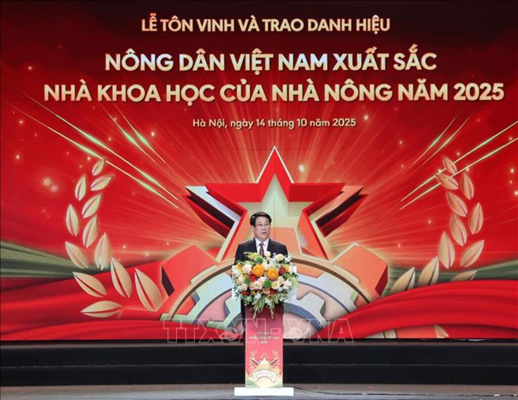 Tối 14/10, tại Cung Văn hóa hữu nghị Việt Xô, Trung ương Hội Nông dân Việt Nam tổ chức Lễ tôn vinh và trao tặng danh hiệu Nông dân Việt Nam xuất sắc, Nhà Khoa học của nhà nông năm 2025 nhân kỷ niệm 95 năm Ngày thành lập Hội Nông dân Việt Nam (14/10/1930 – 14/10/2025). Chủ tịch nước Lương Cường dự và phát biểu tại buổi lễ.
