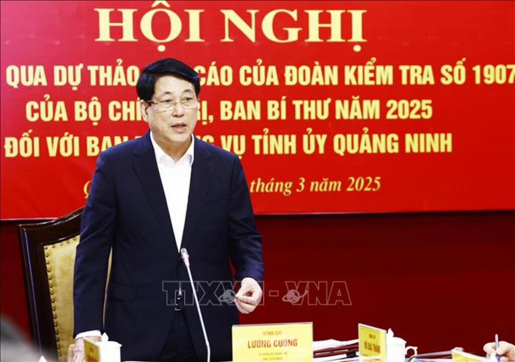 Phát biểu kết luận tại hội nghị, Chủ tịch nước Lương Cường đánh giá Ban thường vụ Tỉnh ủy Quảng Ninh và các tổ chức đảng được kiểm tra đã quán triệt sâu sắc, thái độ nghiêm túc, chuẩn bị kỹ lưỡng, bài bản các nội dung; phối hợp chặt chẽ với Đoàn kiểm tra về bốn nội dung được kiểm tra.