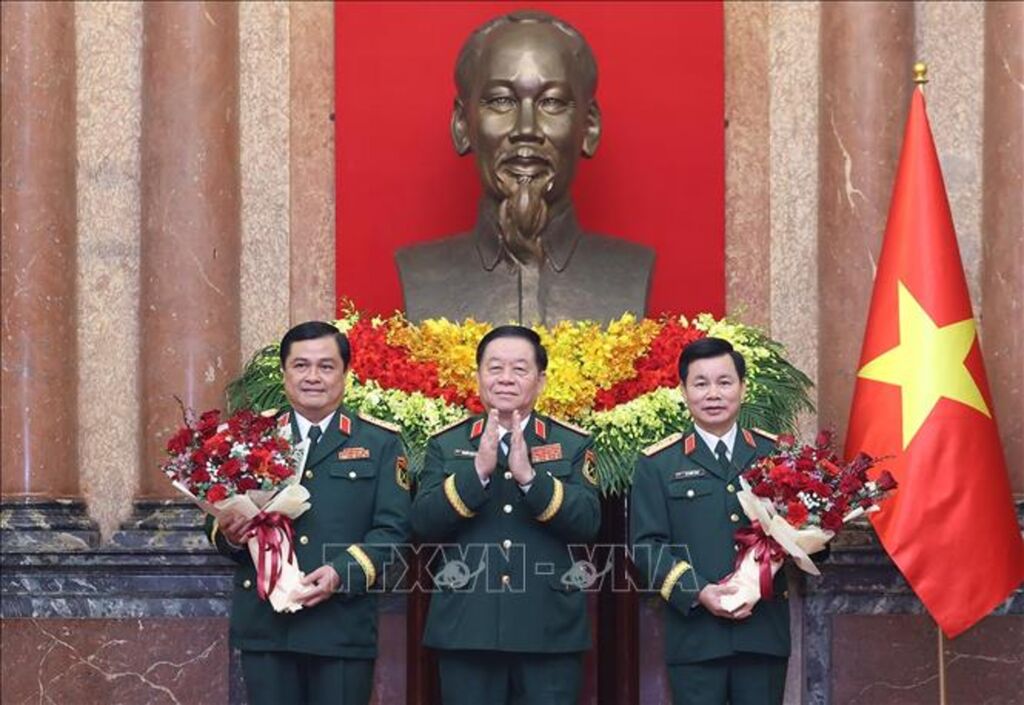 Trong bối cảnh đó, Chủ tịch nước yêu cầu hai đồng chí vừa được thăng quân hàm tiếp tục phát huy truyền thống vẻ vang của Quân đội nhân dân Anh hùng; giữ gìn phẩm chất đạo đức cách mạng; đoàn kết, gắn bó máu thịt với cán bộ, chiến sĩ và nhân dân; học tập, tu dưỡng, rèn luyện để luôn xứng đáng với đạo làm Tướng như Bác Hồ kính yêu đã dạy và là người lãnh đạo, chỉ huy tài năng, mẫu mực, nỗ lực phấn đấu, khắc phục khó khăn, thử thách, hoàn thành xuất sắc mọi nhiệm vụ mà Đảng, Nhà nước và nhân dân tin tưởng giao phó.