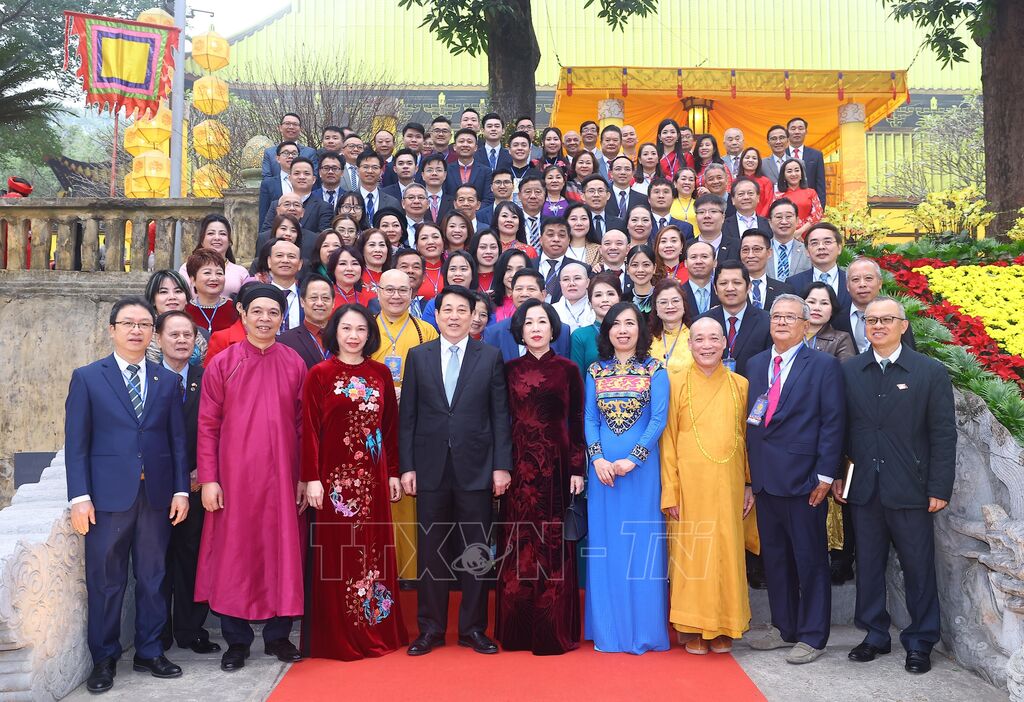Chủ tịch nước và Phu nhân cùng các quan khách, kiều bào đã bày tỏ lòng thành kính cầu cho quốc thái dân an, đất nước bước vào năm mới với nhiều thành công đột phá hơn nữa.