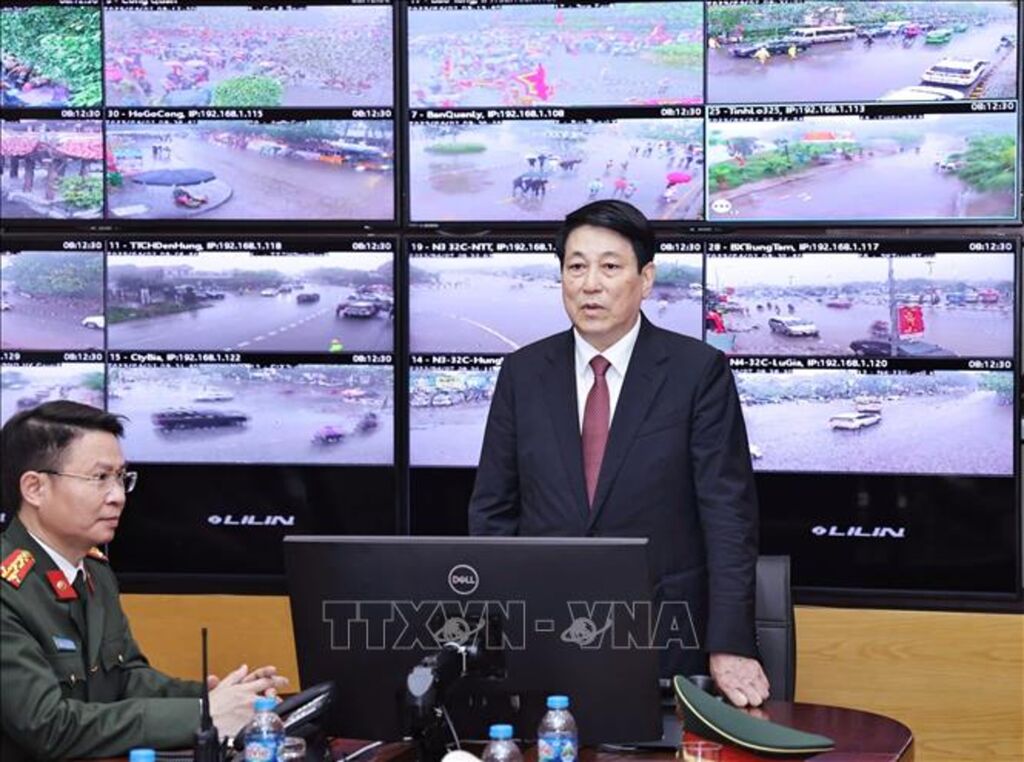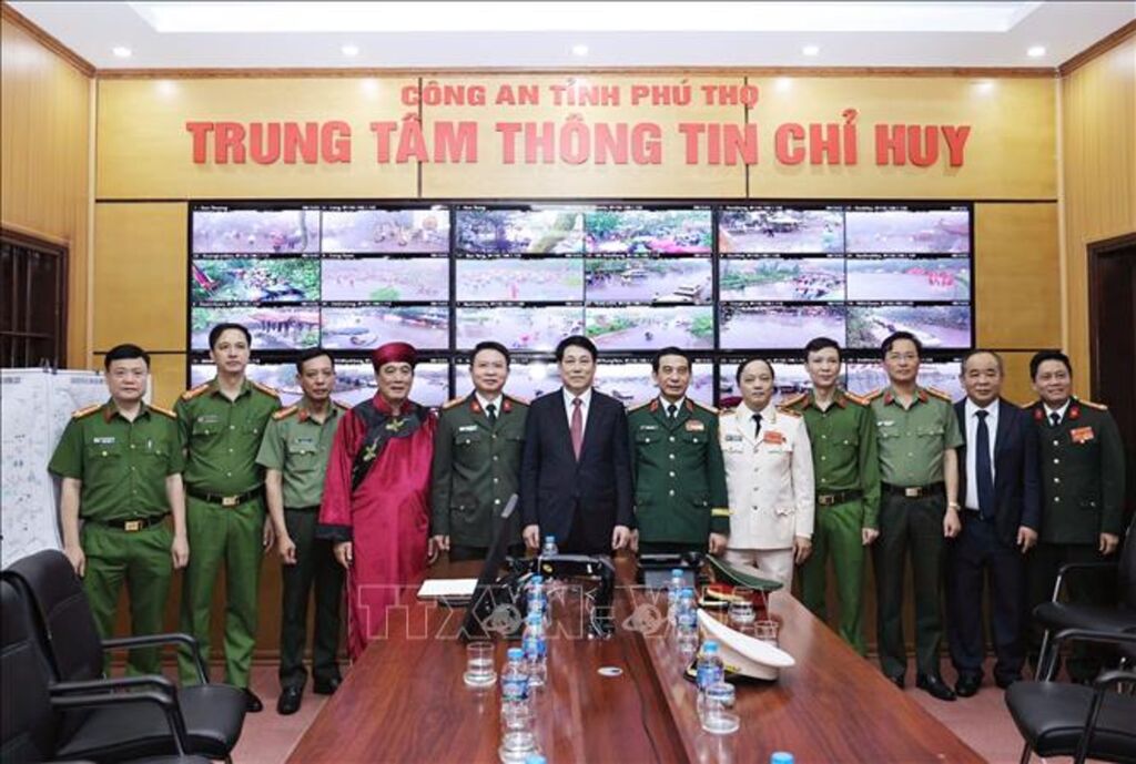 Nói chuyện với cán bộ chiến sỹ túc trực tại Trung tâm, Chủ tịch nước Lương Cường ghi nhận và biểu dương tinh thần làm việc tận tụy, hết mình vì nhân dân, cũng như những nỗ lực, cố gắng của cán bộ chiến sỹ Công an tỉnh nói riêng và các lực lượng tham gia công tác bảo vệ an ninh trật tự cho lễ hội Đền Hùng nói chung.