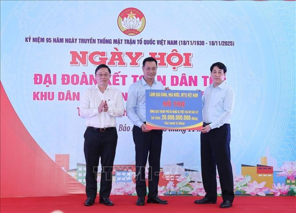 Sáng 18/11, Chủ tịch nước Lương Cường đã dự Ngày hội Đại đoàn kết toàn dân tại Thôn Bảo An, xã Gò Nổi, thành phố Đà Nẵng nhân dịp 95 năm Ngày truyền thống Mặt trận Tổ quốc Việt Nam (18/11/1930 - 18/11/2025), cũng là Ngày Đại đoàn kết toàn dân năm 2025.