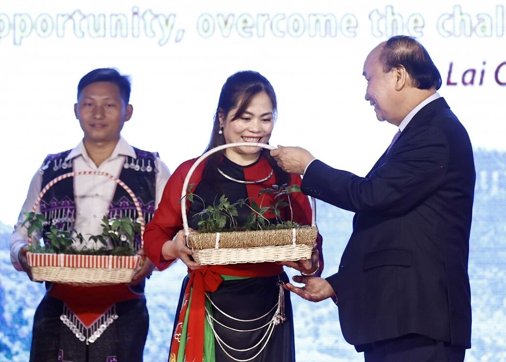 Tại buổi lễ, để thúc đẩy mở rộng vùng trồng và vận động người dân tích cực tham gia trồng Sâm Lai Châu, Chủ tịch nước Nguyễn Xuân Phúc tặng cây giống Sâm Lai Châu cho các hộ gia đình tích cực trồng sâm của tỉnh.