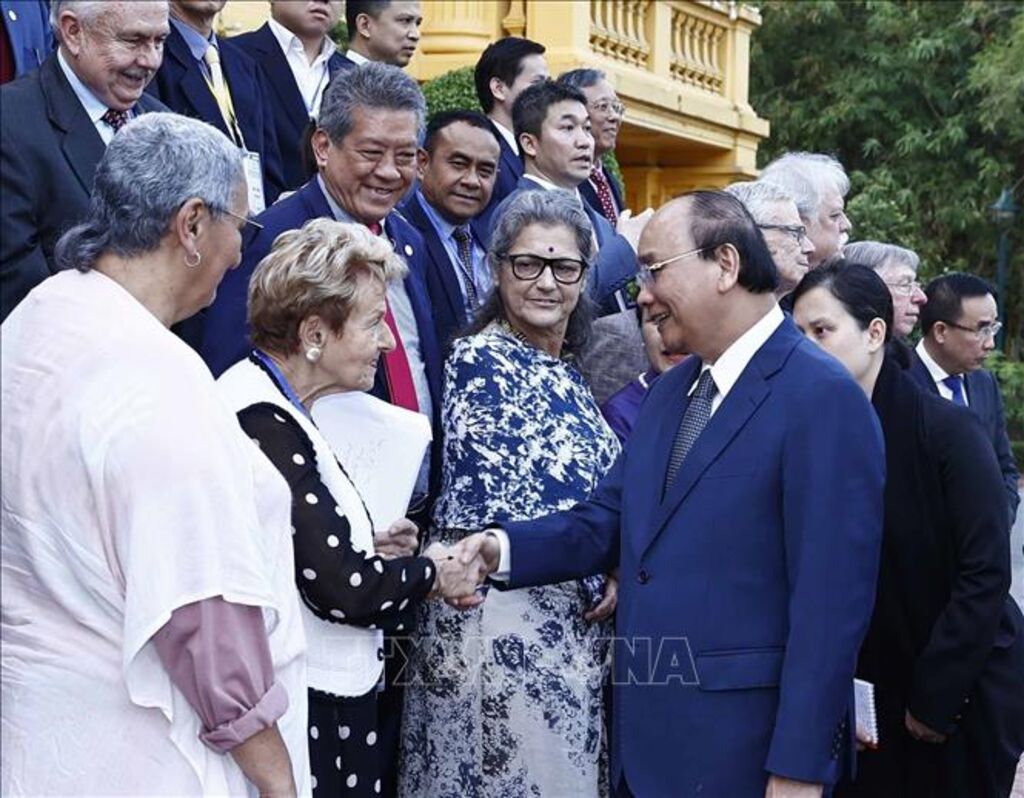 Phát biểu tại buổi tiếp, thay mặt lãnh đạo Đảng và Nhà nước Việt Nam, Chủ tịch nước Nguyễn Xuân Phúc nhiệt liệt chào mừng các đại biểu quốc tế tham dự các hoạt động kỷ niệm 50 năm ngày ký Hiệp định Paris về chấm dứt chiến tranh, lập lại hòa bình ở Việt Nam; cho rằng sự có mặt của các đại biểu quốc tế thể hiện tình cảm sâu sắc, quan tâm, yêu mến Việt Nam nhiều năm qua, đặc biệt trong những ngày giáp Tết Quý Mão 2023.