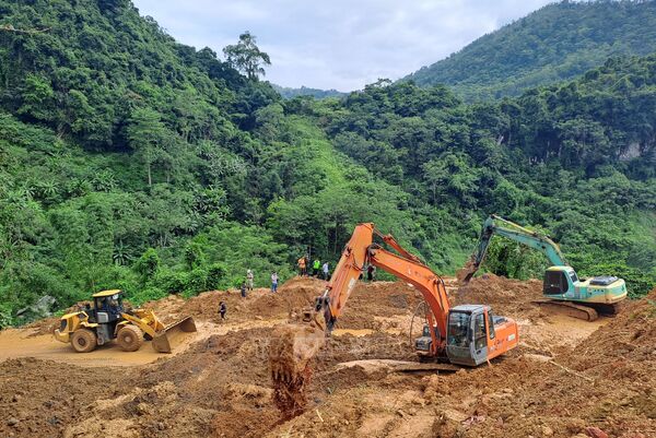 Các lực lượng chức năng khẩn trương tìm kiếm các nạn nhân đang bị vùi lấp.