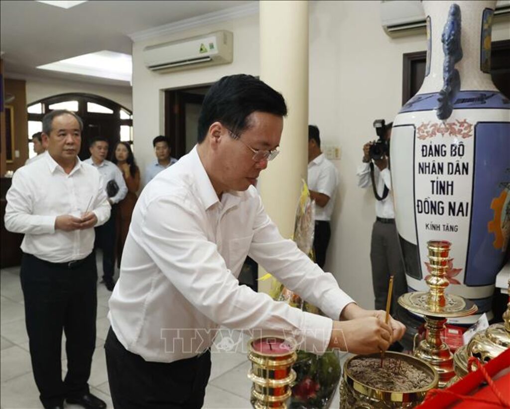TTXVN - Nhân dịp Tết Nguyên đán Giáp Thìn 2024, kỷ niệm 94 năm Ngày thành lập Đảng Cộng sản Việt Nam, theo truyền thống của dân tộc, Chủ tịch nước Võ Văn Thưởng đã tới dâng hương tưởng nhớ các đồng chí Lãnh đạo Đảng, Nhà nước đã từ trần và thăm một số đồng chí nguyên lãnh đạo trên địa bàn các tỉnh phía Nam.