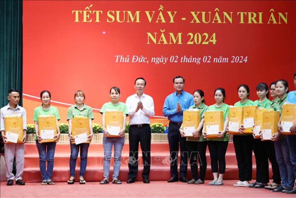 Chiều 2/2, tức chiều 23 tháng Chạp, bên thềm Xuân mới Giáp Thìn 2024, Chủ tịch nước Võ Văn Thưởng và Ủy viên Bộ Chính trị, Bí thư Thành ủy Thành phố Hồ Chí Minh Nguyễn Văn Nên cùng đại diện lãnh đạo một số ban, bộ, ngành Trung ương đã tham dự Chương trình “Tết sum vầy - Xuân tri ân” năm 2024 và chúc Tết công nhân, người lao động, hộ dân có hoàn cảnh khó khăn tại thành phố Thủ Đức, Thành phố Hồ Chí Minh.
