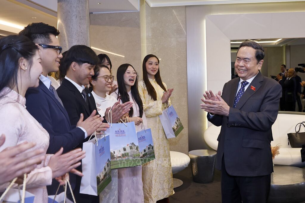Nhắc lại câu nói của Bác Hồ “Non sông Việt Nam có trở nên tươi đẹp hay không, dân tộc Việt Nam có bước tới đài vinh quang để sánh vai với các cường quốc năm châu được hay không, chính là nhờ một phần lớn ở công học tập của các cháu,” Chủ tịch Quốc hội mong muốn các bạn sinh viên, lưu học sinh nỗ lực học tập, tiếp thu thành tựu khoa học công nghệ nước sở tại; tiếp tục phát huy trí tuệ, kinh nghiệm và bản lĩnh của mình để đóng góp sức mình vào công cuộc xây dựng và phát triển đất nước.