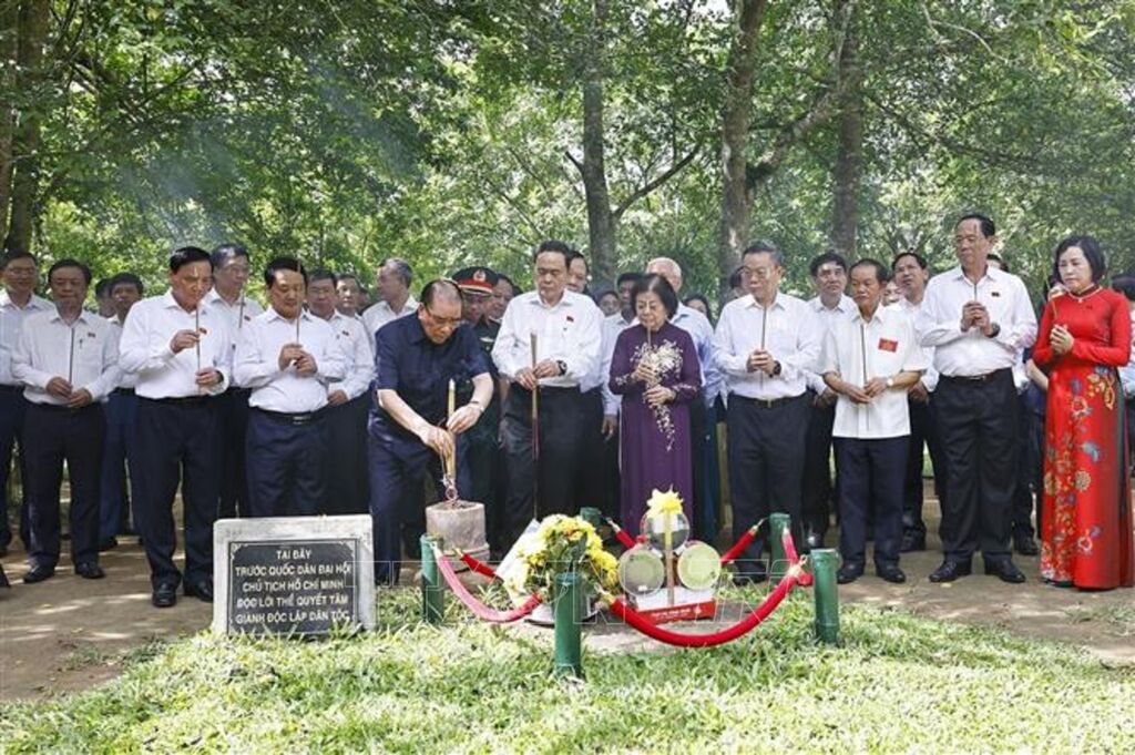 Ghi sổ lưu niệm tại đây, Chủ tịch Quốc hội Trần Thanh Mẫn nhấn mạnh, đúng ngày này cách đây 80 năm, Quốc dân đại hội đã họp tại Tân Trào, ban hành nhiều quyết sách quan trọng, dẫn đến thắng lợi của Cách mạng Tháng Tám và sự ra đời của nước Việt Nam Dân chủ Cộng hòa, mở đầu kỷ nguyên độc lập - tự do, nhân dân làm chủ đất nước.