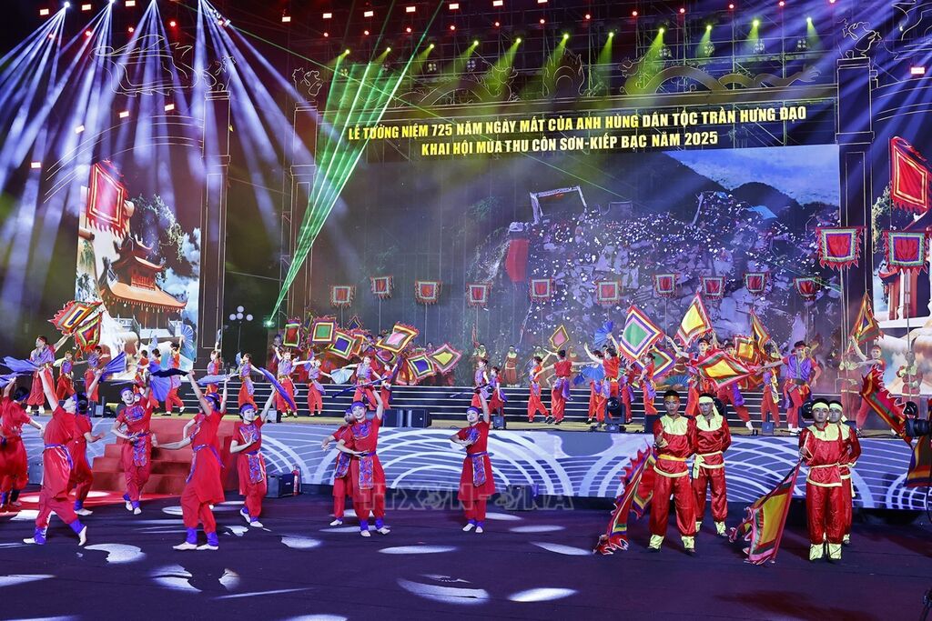Đọc diễn văn tưởng niệm, Phó Bí thư Thành ủy, Chủ tịch UBND thành phố Hải Phòng, Trưởng Ban Tổ chức Lễ hội mùa Thu Côn Sơn - Kiếp Bạc năm 2025 Lê Ngọc Châu cho biết, cách đây 725 năm, ngày 20 tháng 8 năm Canh Tý (1300), Hưng Đạo Đại vương Trần Quốc Tuấn qua đời tại Vạn Kiếp. Để tri ân công đức của vị Anh hùng dân tộc, nhà quân sự thiên tài, trí - dũng song toàn, đã ba lần lãnh đạo quân dân Đại Việt đánh thắng giặc Nguyên Mông, Vua Trần Anh Tông đã truy phong Ngài là Thái sư Thượng phụ, Thượng Quốc công, Nhân Vũ Hưng Đạo Đại vương. Nhân dân đã suy tôn Ngài là Cửu Thiên Vũ Đế Đức Thánh Trần. Ngay khi còn sinh thời, nhân dân đã lập Sinh từ trên nền Vương phủ xưa tại Vạn Kiếp để thờ phụng. Sau khi Ngài mất, vua Trần sắc chỉ cho nhân dân lập đền thờ, nay là đền Kiếp Bạc.